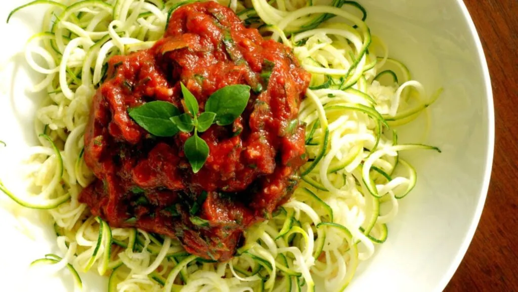 Modo de fazer: Corte as abobrinhas em formato de espaguete usando um espiralizador ou ralador. Em uma panela, refogue o alho no azeite até dourar. Adicione os tomates picados e cozinhe até formar um molho. Tempere com sal, pimenta e outros temperos de sua preferência. Misture o molho de tomate com o espaguete de abobrinha e aqueça levemente. Essa receita é baixa em carboidratos e calorias, perfeita para substituir a massa tradicional.