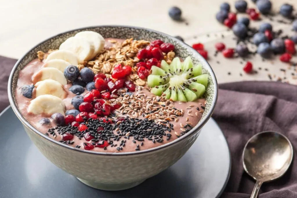Modo de fazer: Em uma tigela, misture as frutas picadas com as sementes de chia e regue com suco de laranja. Essa salada é refrescante, rica em fibras e antioxidantes, e ajuda a manter a saciedade.