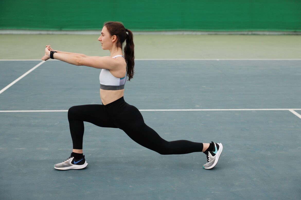 • Aquecimento dinâmico: envolve movimentos que imitam as atividades que serão realizadas durante o treino ou competição, como fazer agachamentos ou lunges (afundo). Esse tipo de aquecimento ajuda a aumentar a mobilidade articular e preparar os músculos para os movimentos específicos da atividade.