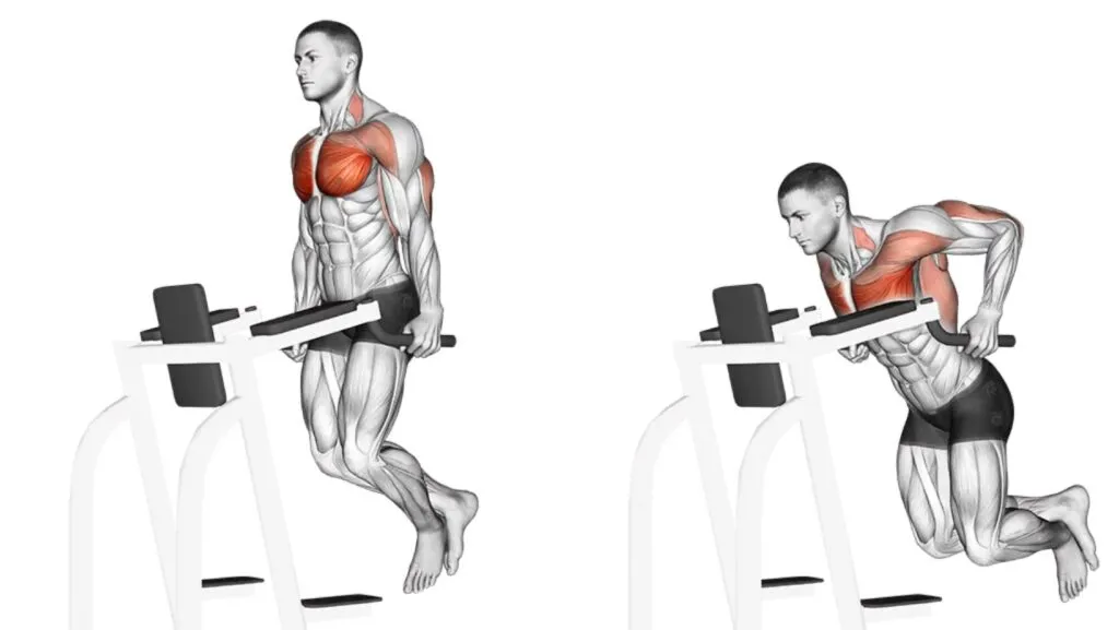 Posicione-se entre as barras paralelas do aparelho e segure-as com as mãos. Levante o corpo estendendo os braços completamente. Flexione os cotovelos até que os ombros a altura dos cotovelos. Empurre o corpo de volta à posição inicial, estendendo os braços novamente. O mergulho na paralela é um exercício eficaz para trabalhar os músculos do tríceps e do peitoral.